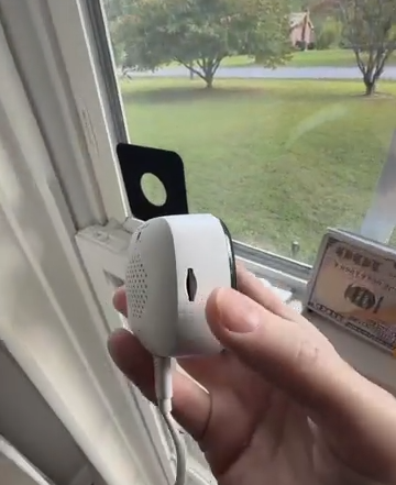 This is a window-mounted security camera that lets you monitor the outside of your home — while staying safely inside.