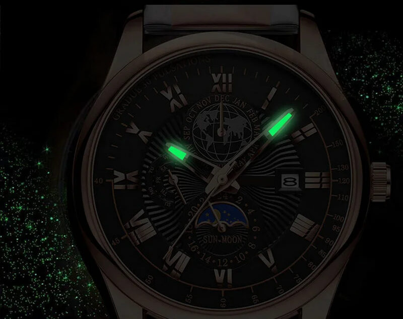 The pointer is coated with a luminous coating, which absorbs the light source according to the duration of sunlight exposure