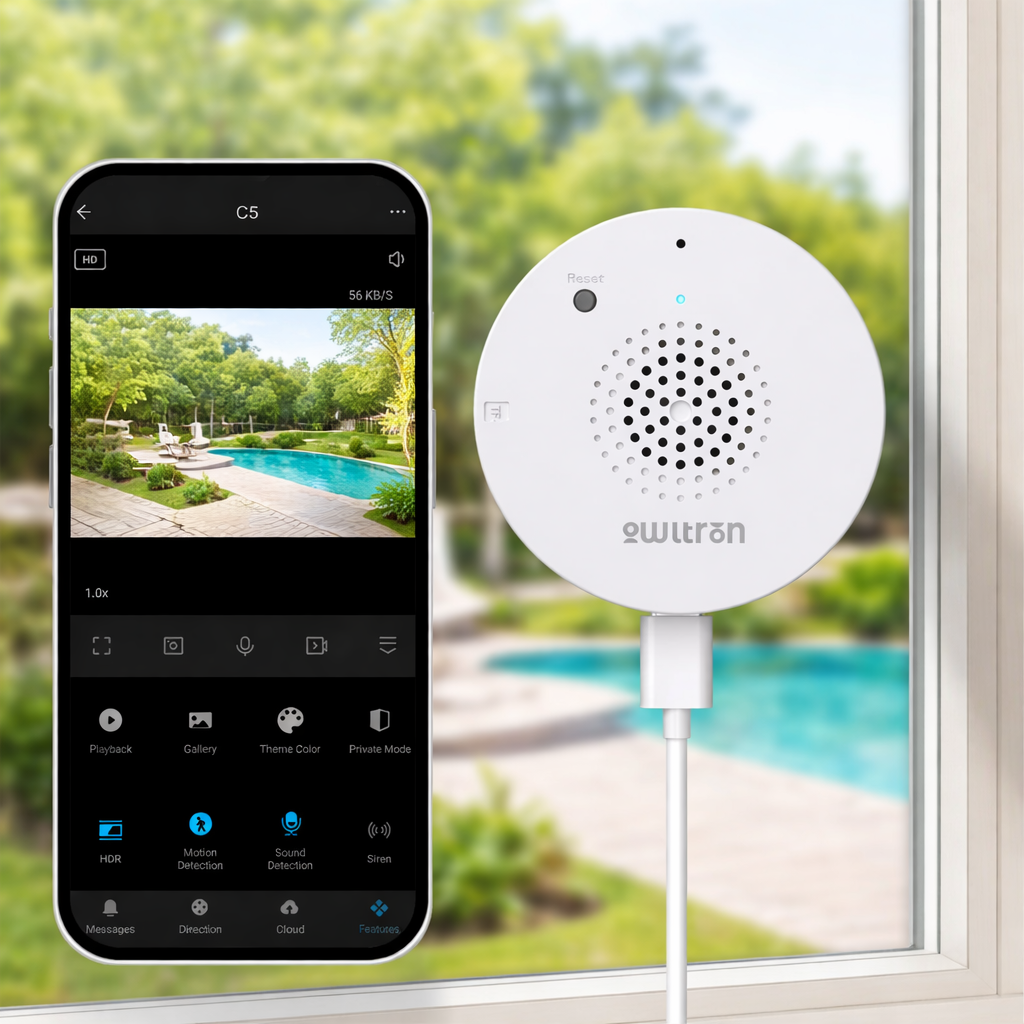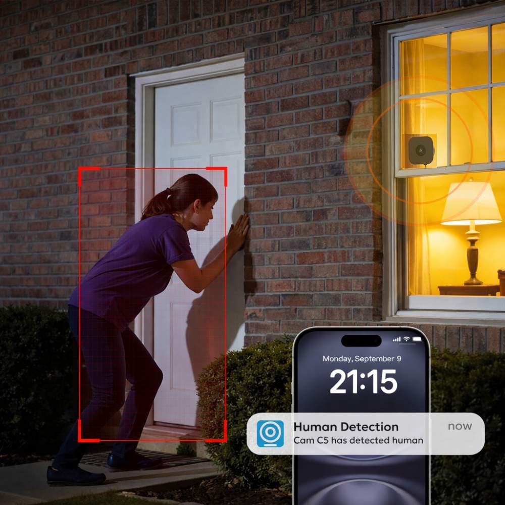 The Window Camera 2K 3MP C5 from Owltron is designed to sit right on your window — giving you a clear outside view while staying safely indoors.